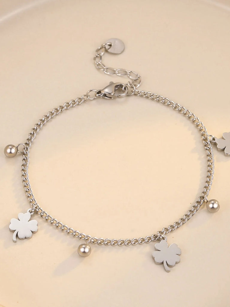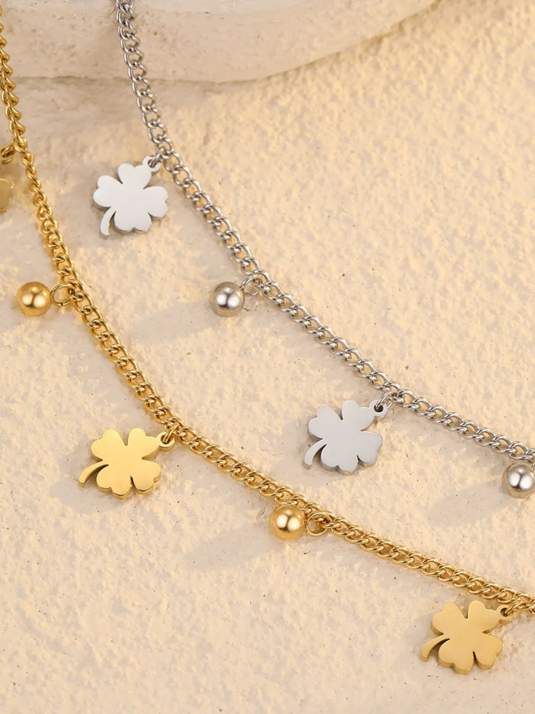 This exquisite Stainless Steel Four Leaf Clover Bracelet features premium grade stainless steel construction ensuring long-lasting durability and tarnish resistance. The delicate four leaf clover charms symbolize good luck, faith, hope, and love, making it a meaningful accessory. Designed as a layered set, these bracelets create a fashion stacking effect that's perfect for modern fashion. The adjustable chain design ensures a comfortable fit for various wrist sizes, while the hypoallergenic stainless steel material makes it suitable for sensitive skin. Available in elegant gold and silver tones, this versatile bracelet complements both casual and formal outfits. The minimalist design adds a touch of sophistication to any look, making it an ideal choice for daily wear or special occasions.