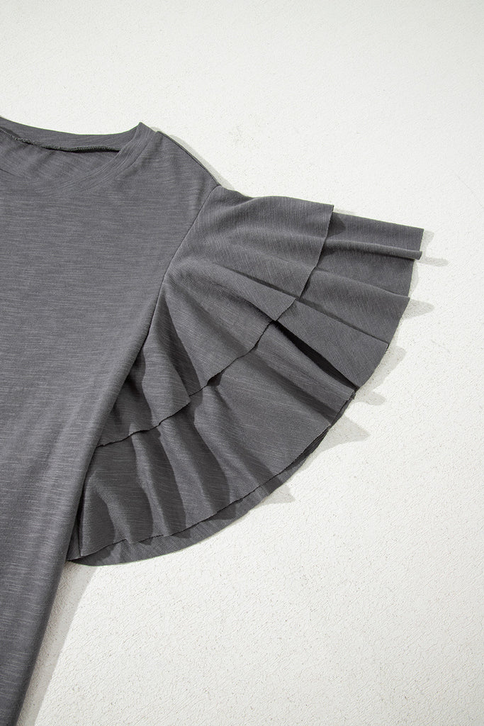 Dark Grey Double Ruffled Short Sleeve Plus Size Top