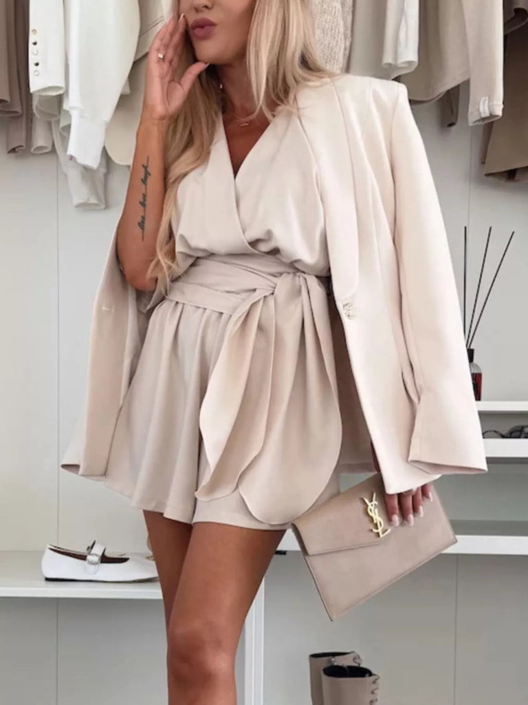 Full Size Surplice Tie Waist Romper Plus Size